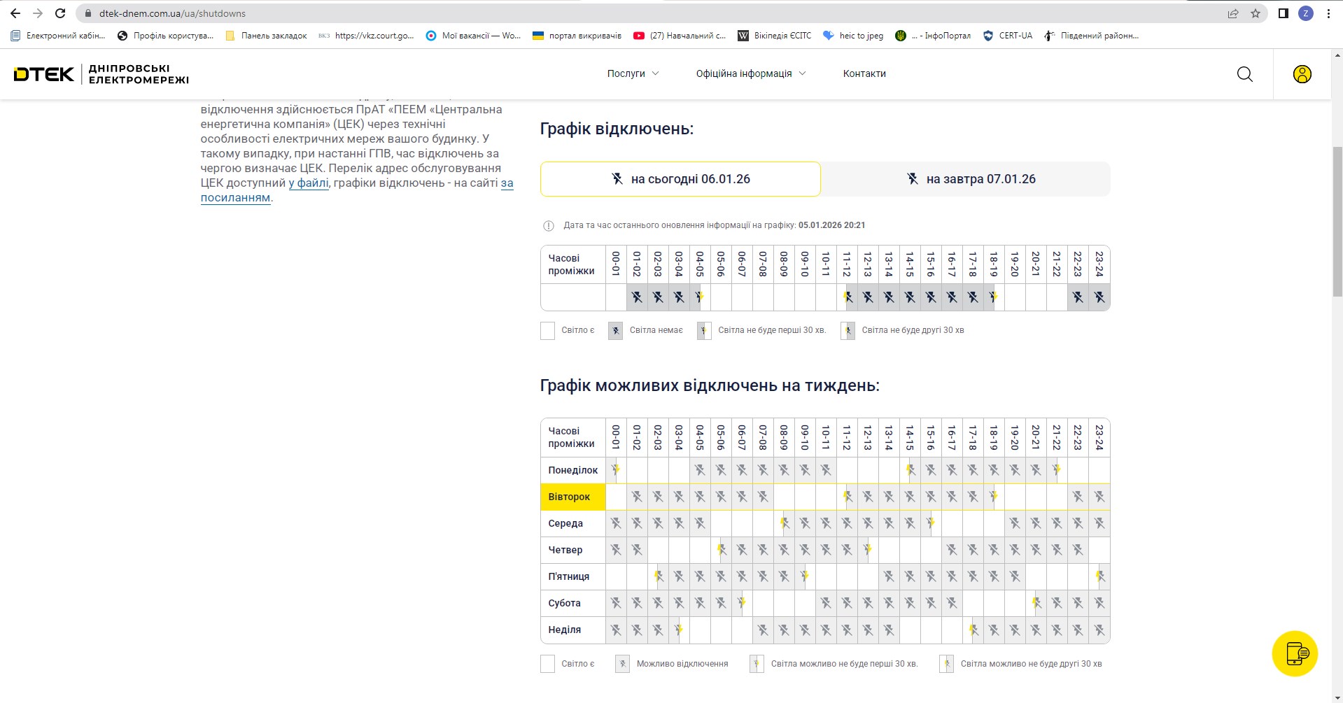 Графік планових відключень електроенергії 06.01.2026 р