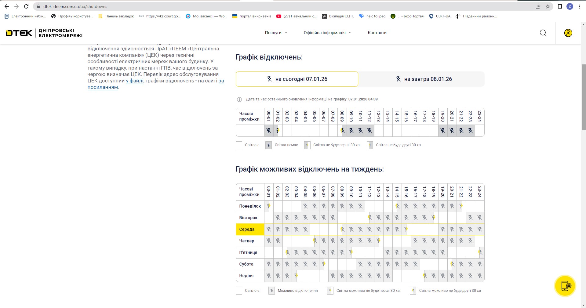 Графік планових відключень електроенергії 07.01.2026 р