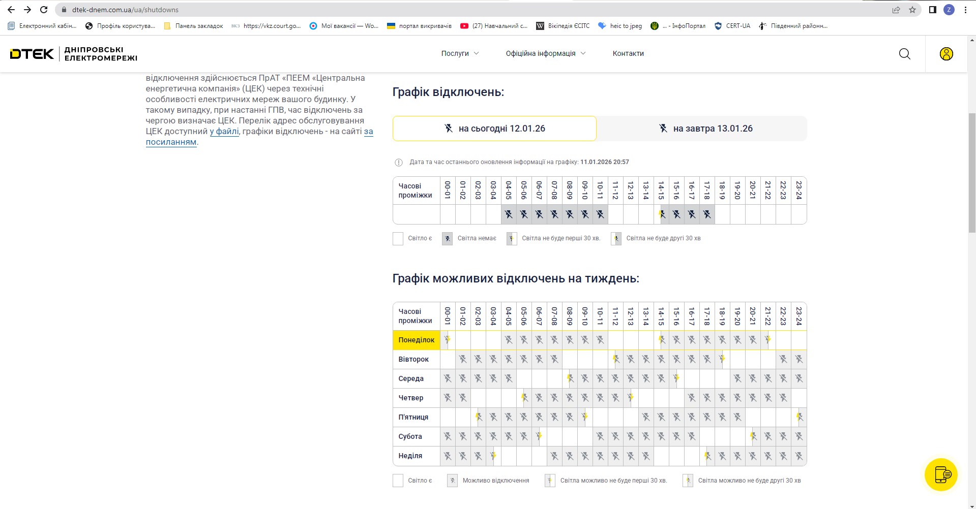 Графік планових відключень електроенергії 12.01.2026 р