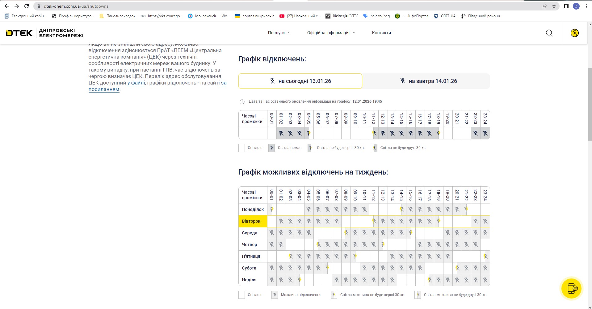 Графік планових відключень електроенергії 13.01.2026 р