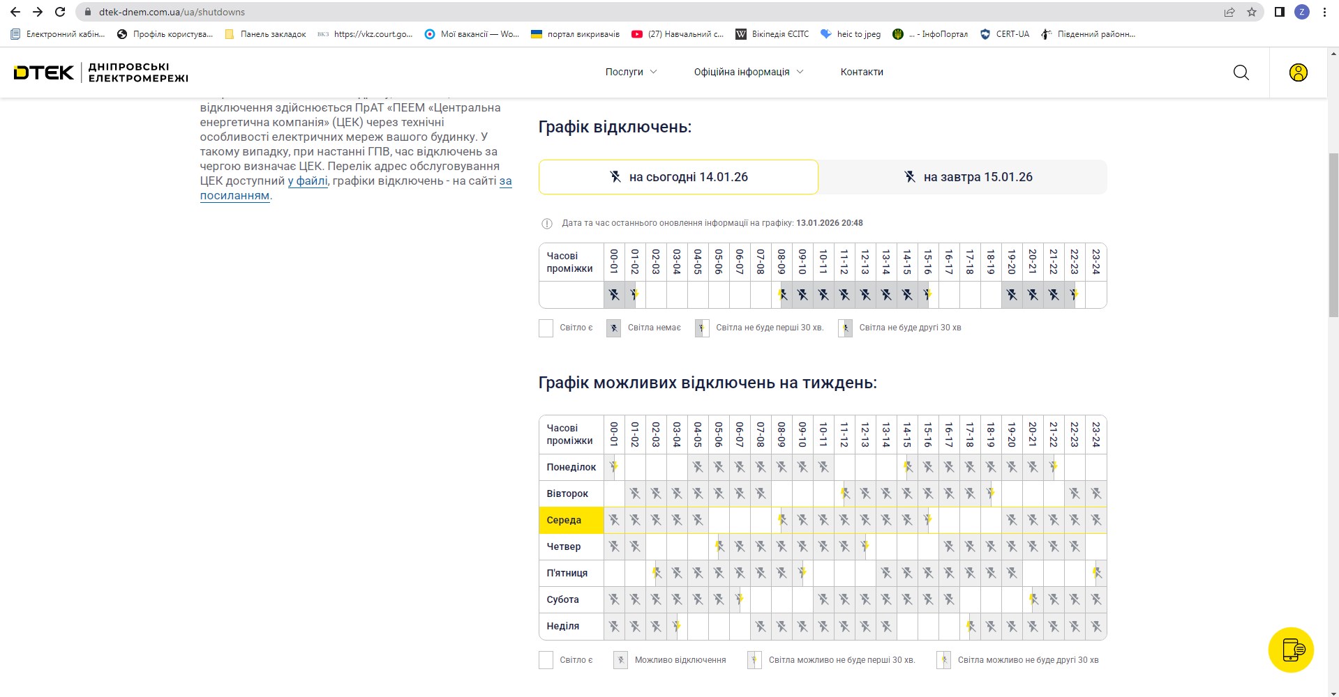 Графік планових відключень електроенергії 14.01.2026 р