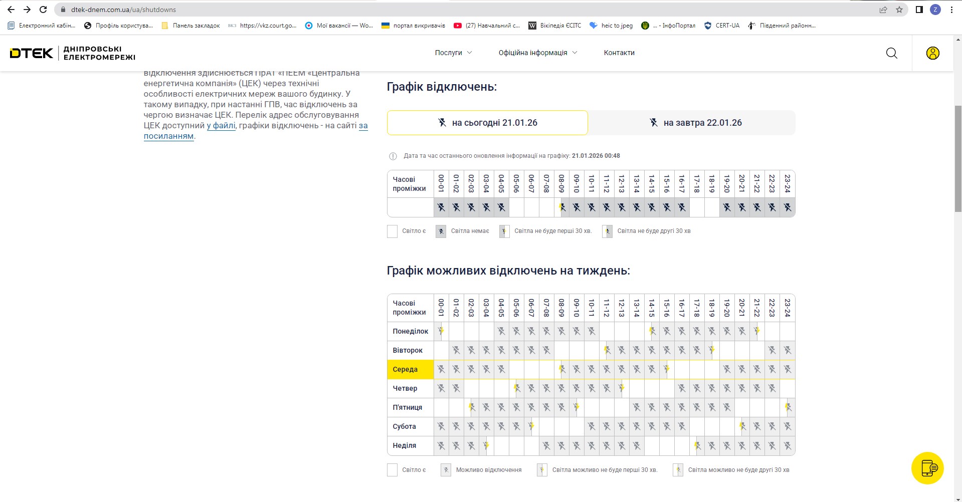 Графік планових відключень електроенергії 21.01.2026 р