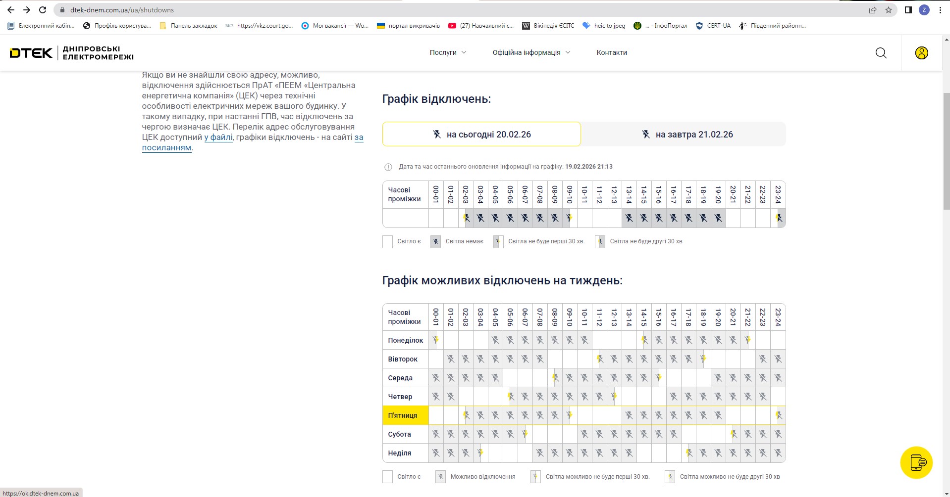 Графік планових відключень електроенергії 20.02.2026 р