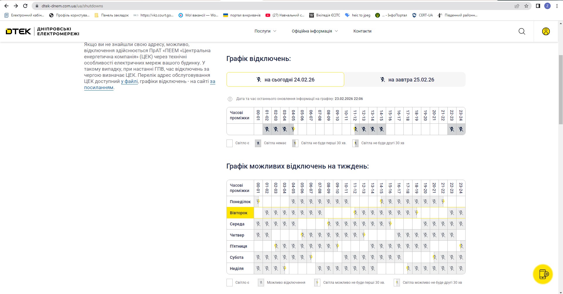Графік планових відключень електроенергії 24.02.2026 р
