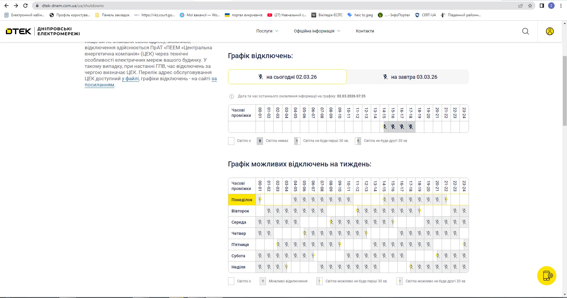 Графік планових відключень електроенергії 02.03.2026 р
